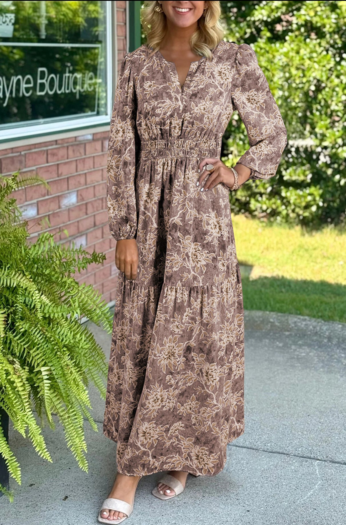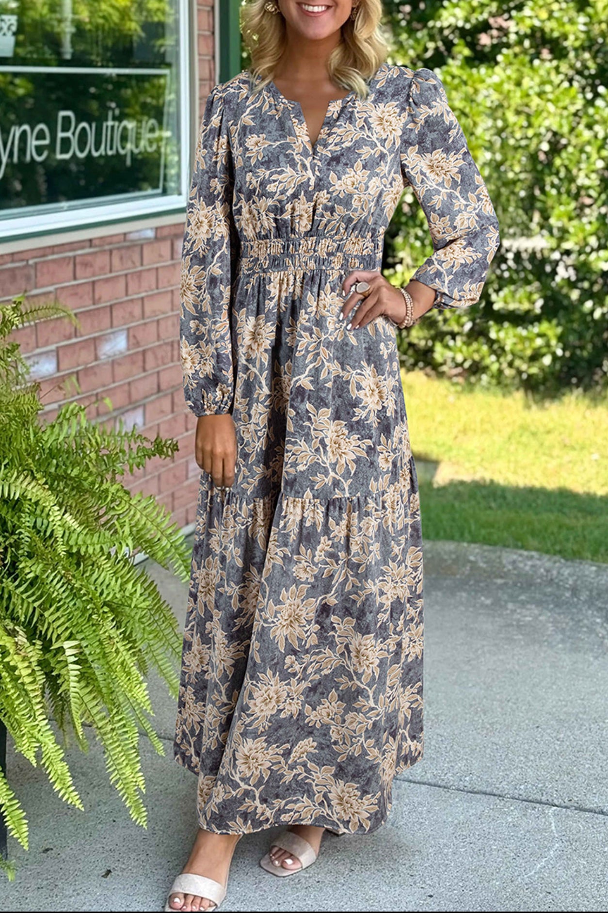 Floral print brings romantic, nature-inspired charm to this elegant maxi dress.