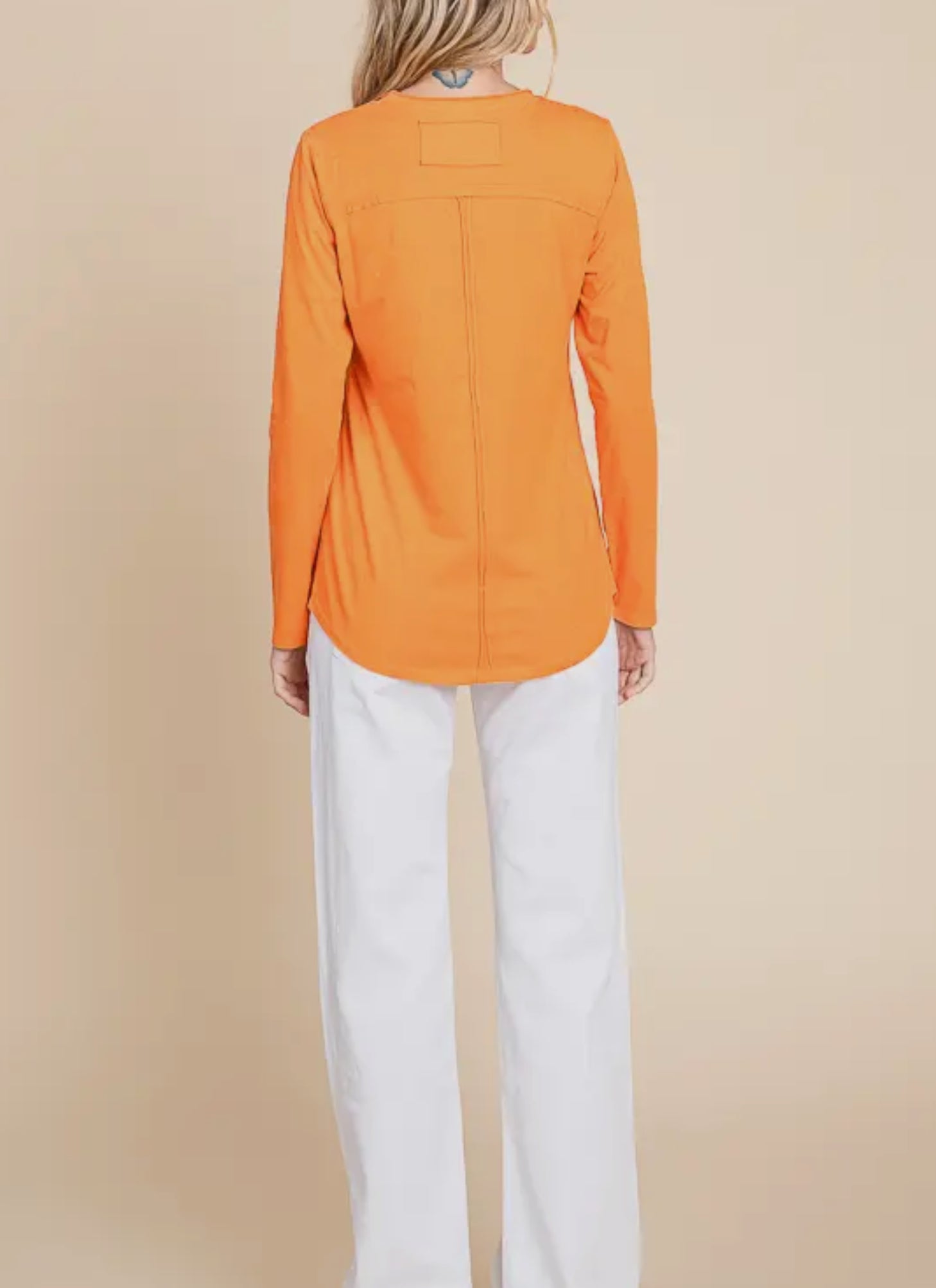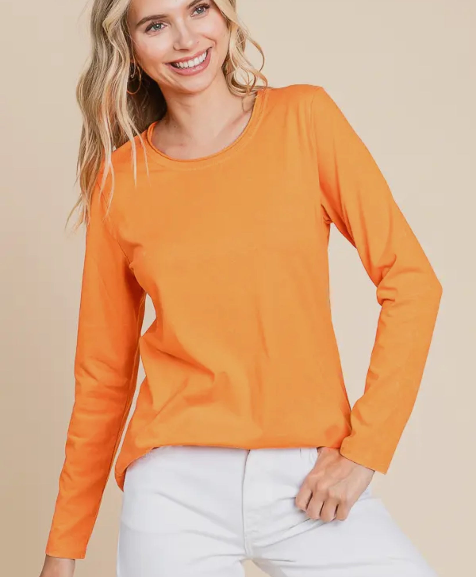 SOLID MINERAL WASH LONG SLEEVE ROUND NECK TOP