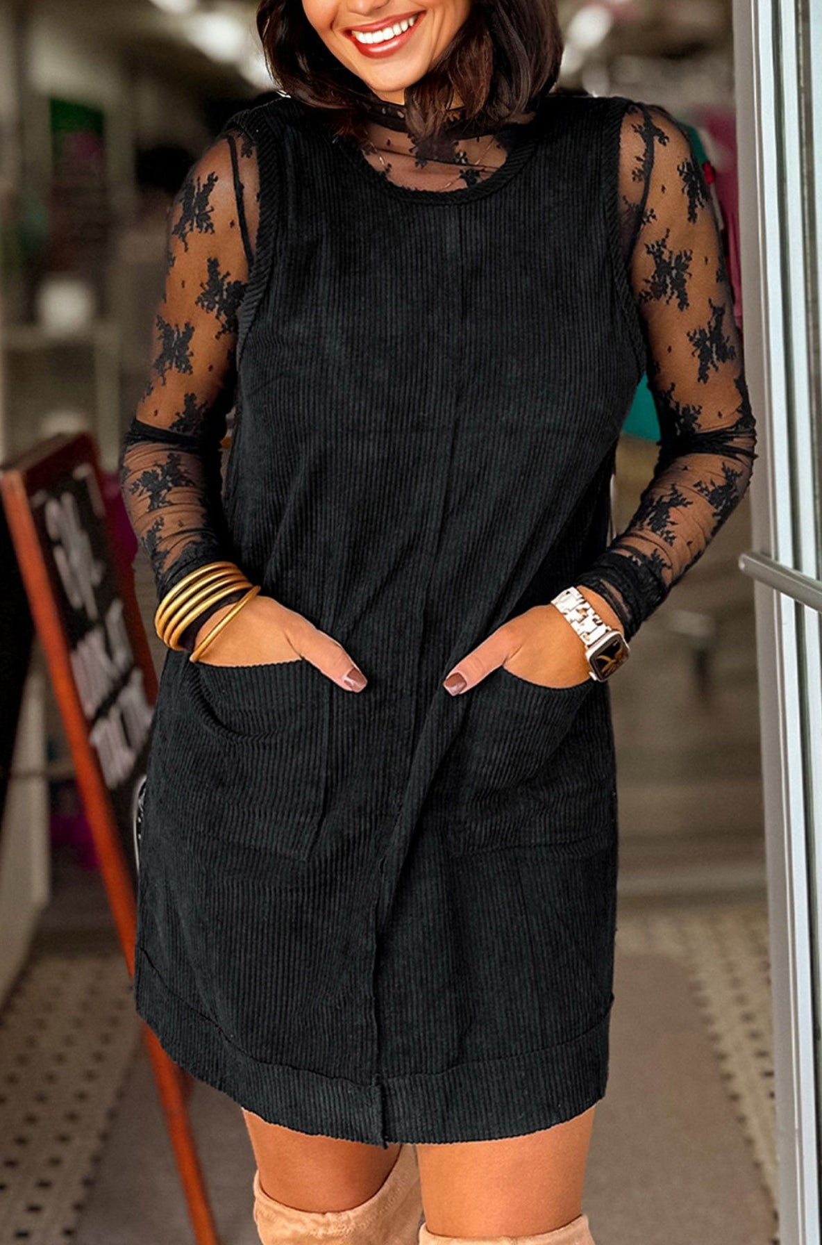 Corduroy Overall Dress with Pockets