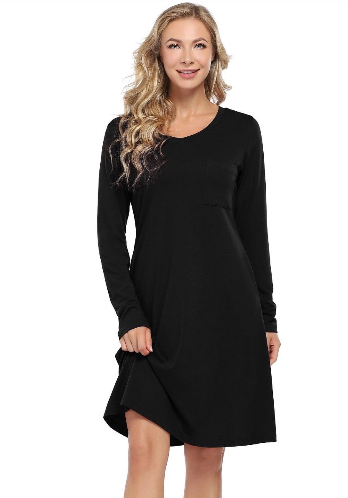 Plus 3 qtr sleeve v-neck dress with pockets