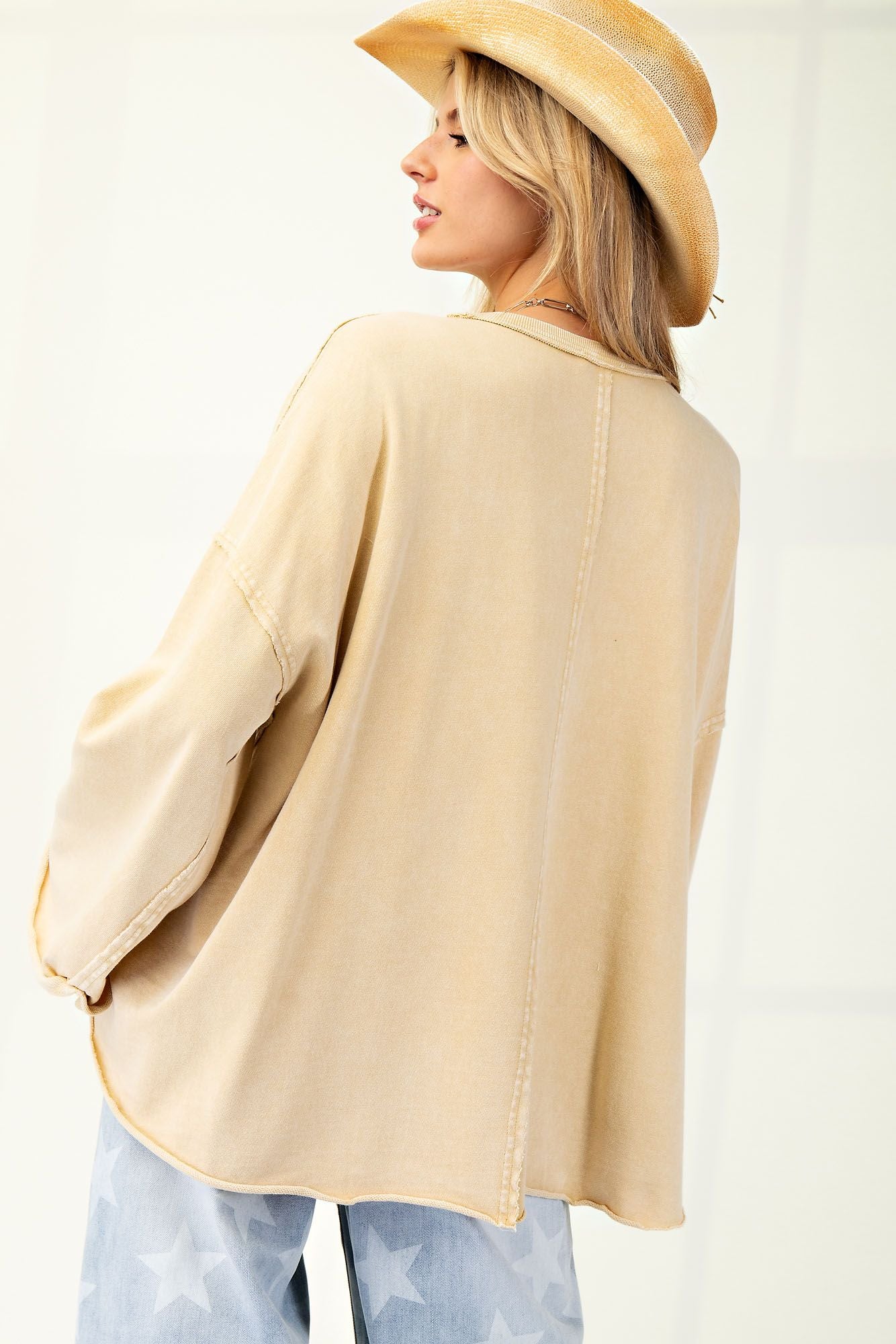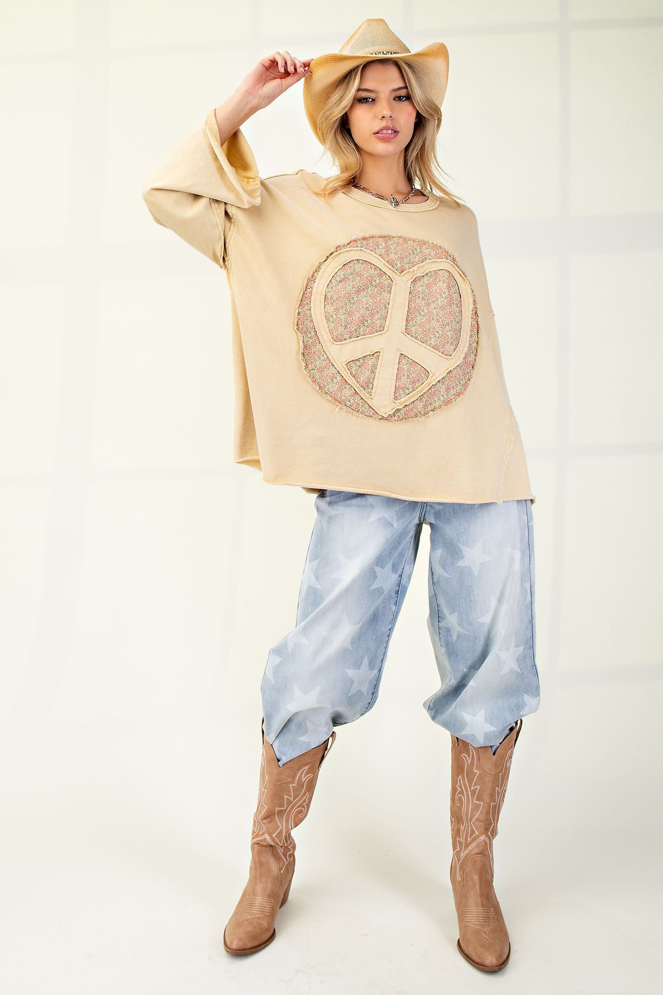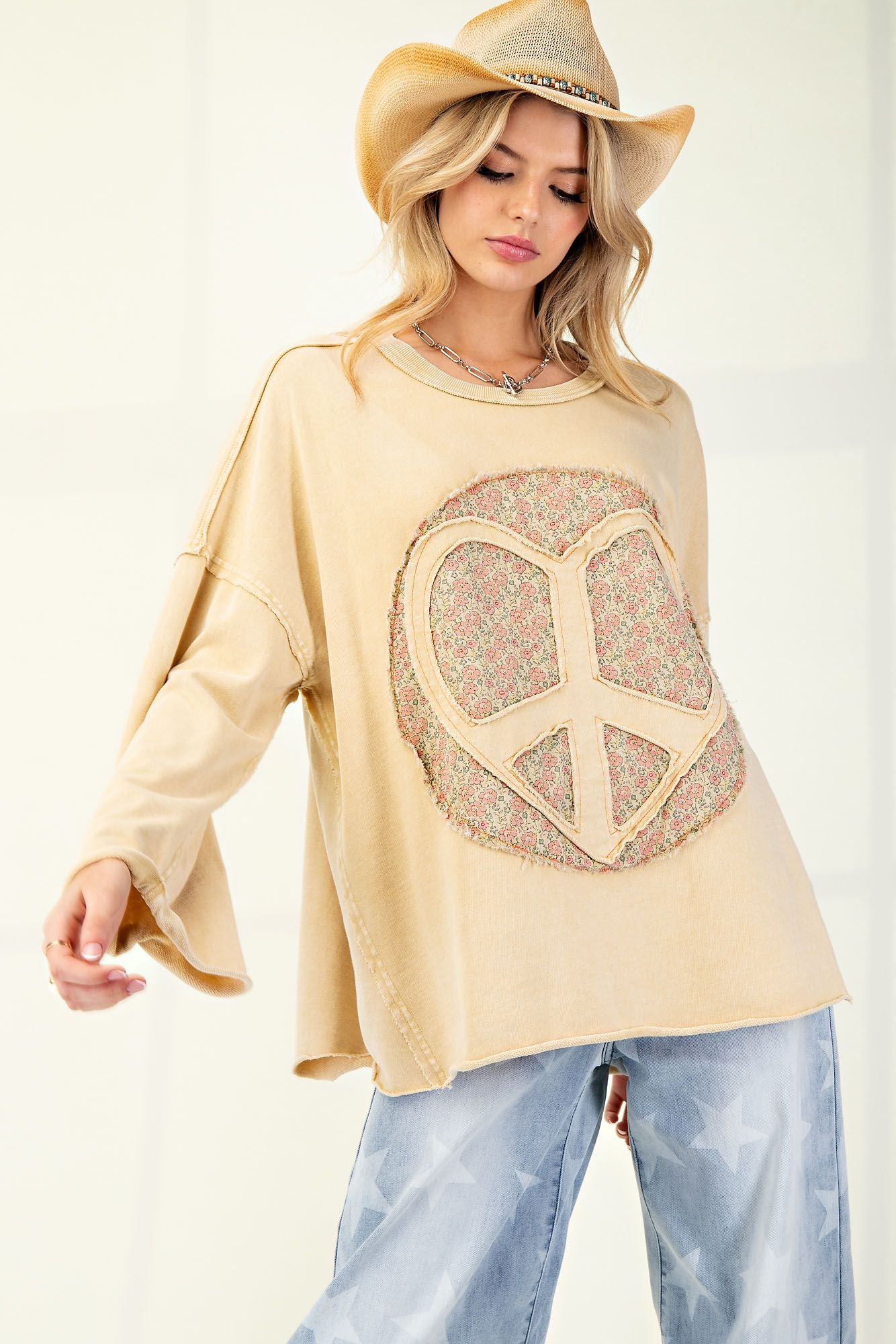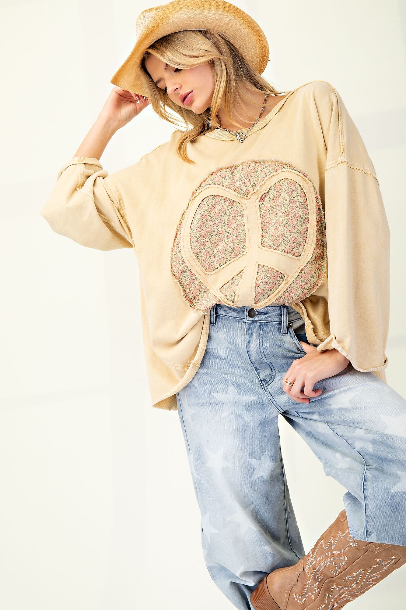Description: PEACE SIGN MINERAL WASHED TERRY KNIT TOP