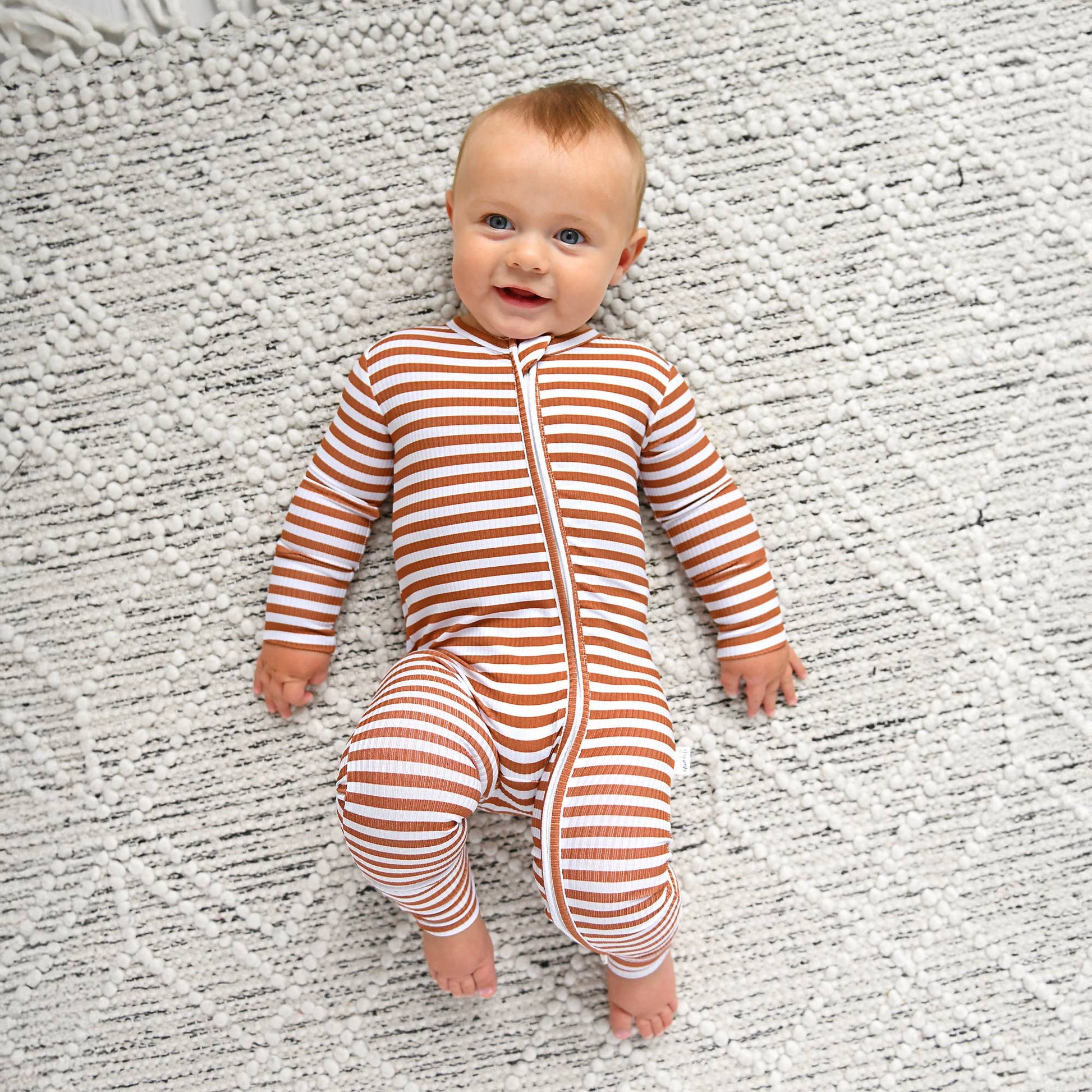 This zip one piece is super soft and comfortable. Featuring a zipper that runs from the top of the outfit to the ankle. Our favorite part about this outfit is that the zipper is 2 way! Making for super easy diaper changes without having to remove the whole outfit.