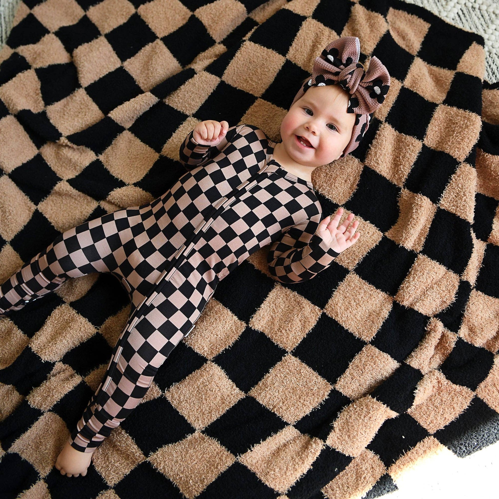 Due to the differing fabric, the coloring in the bow is not an exact match to our bamboo clothing.