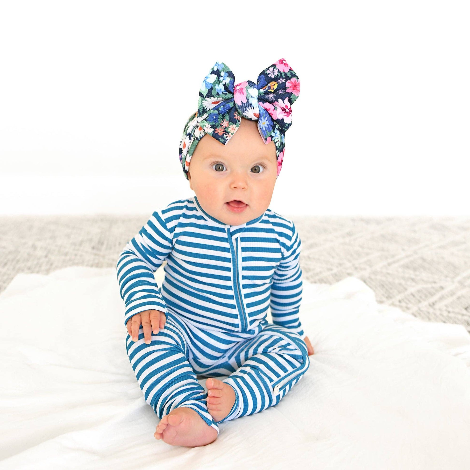 This zip one piece is super soft and comfortable. Featuring a zipper that runs from the top of the outfit to the ankle. Our favorite part about this outfit is that the zipper is 2 way! Making for super easy diaper changes without having to remove the whole outfit.