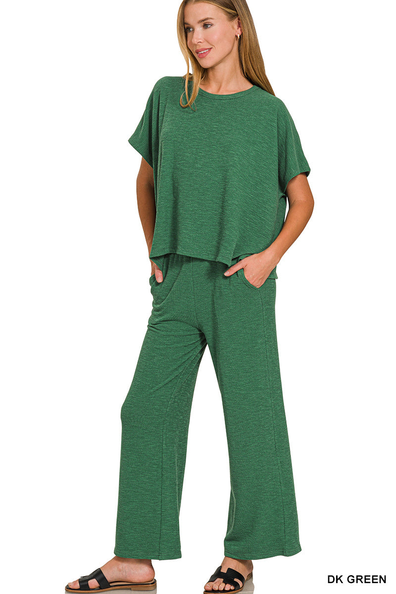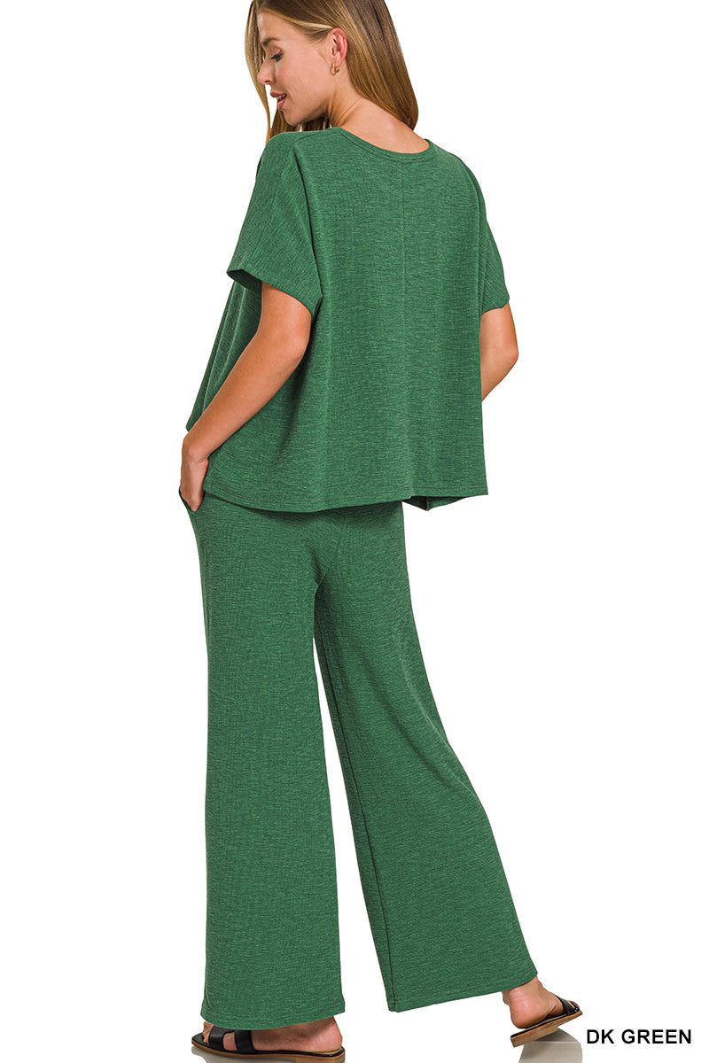 SLUB SHORT SLV TOP & PANTS 2PCS SET