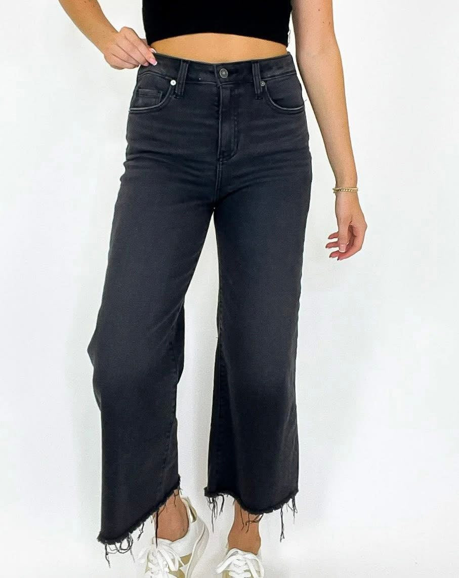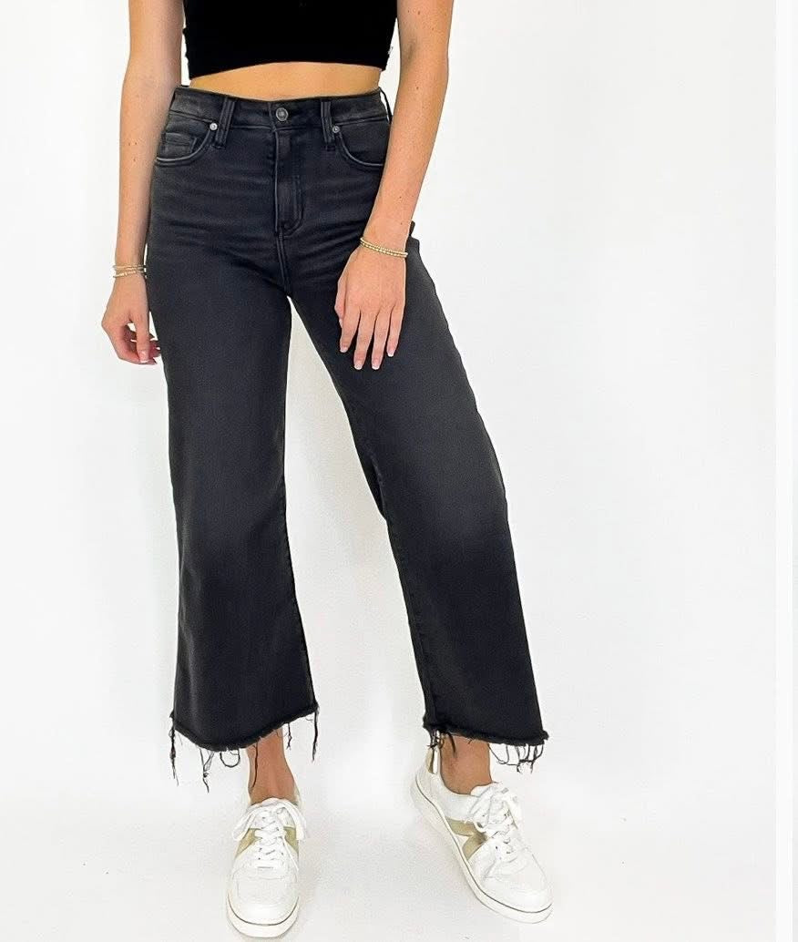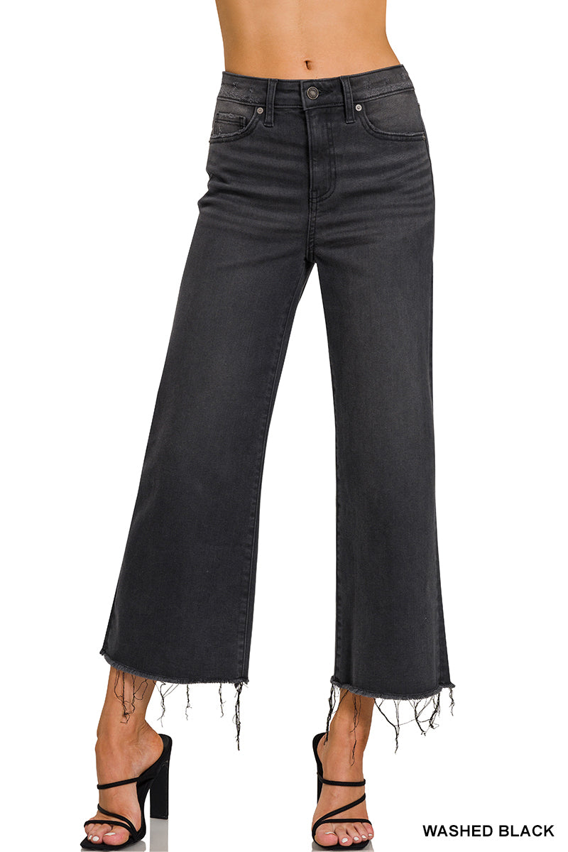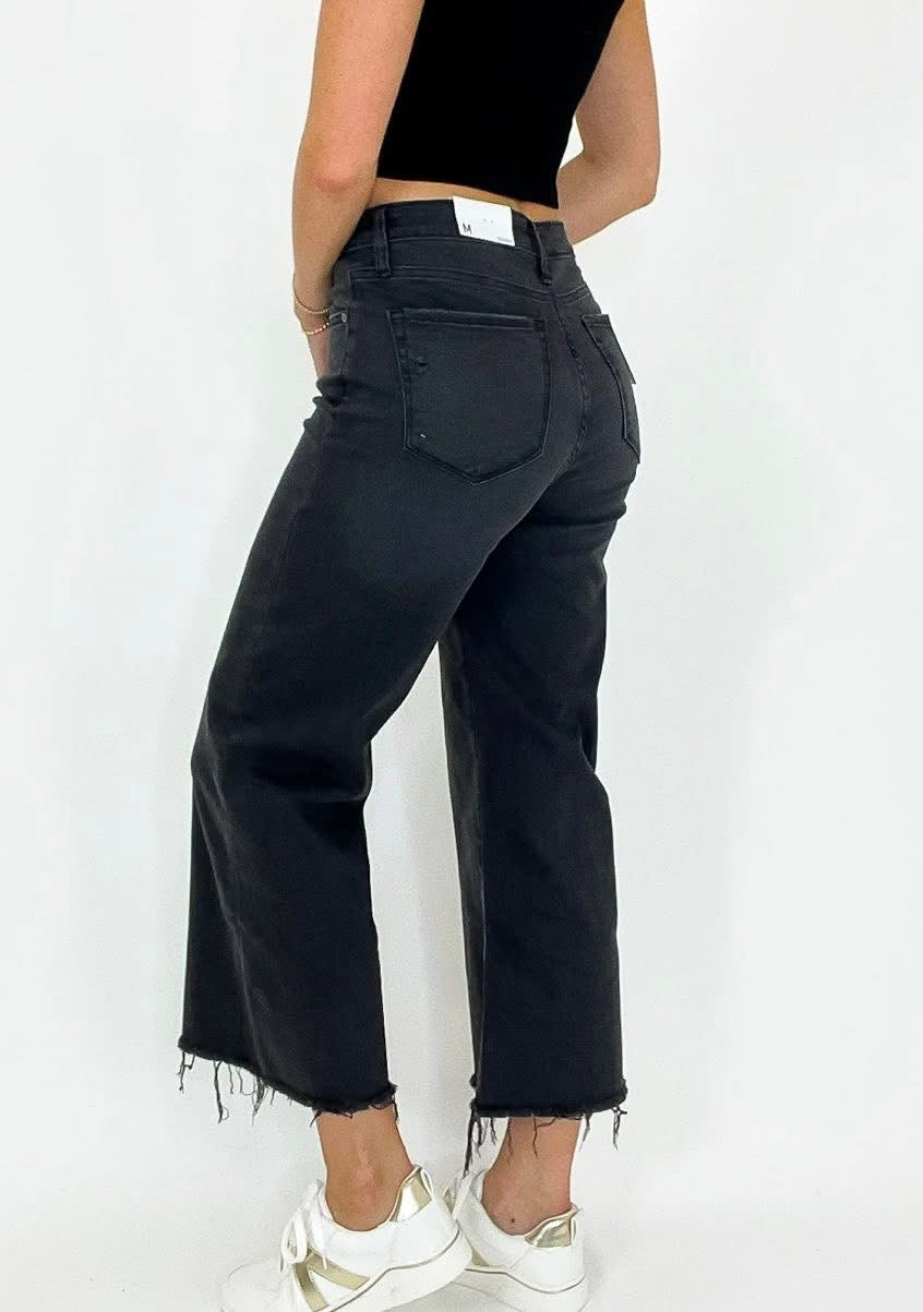 HIGH RISE WASHED BLACK CROPPED JEAN PANTS