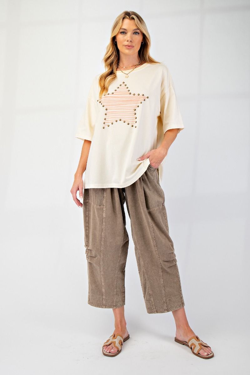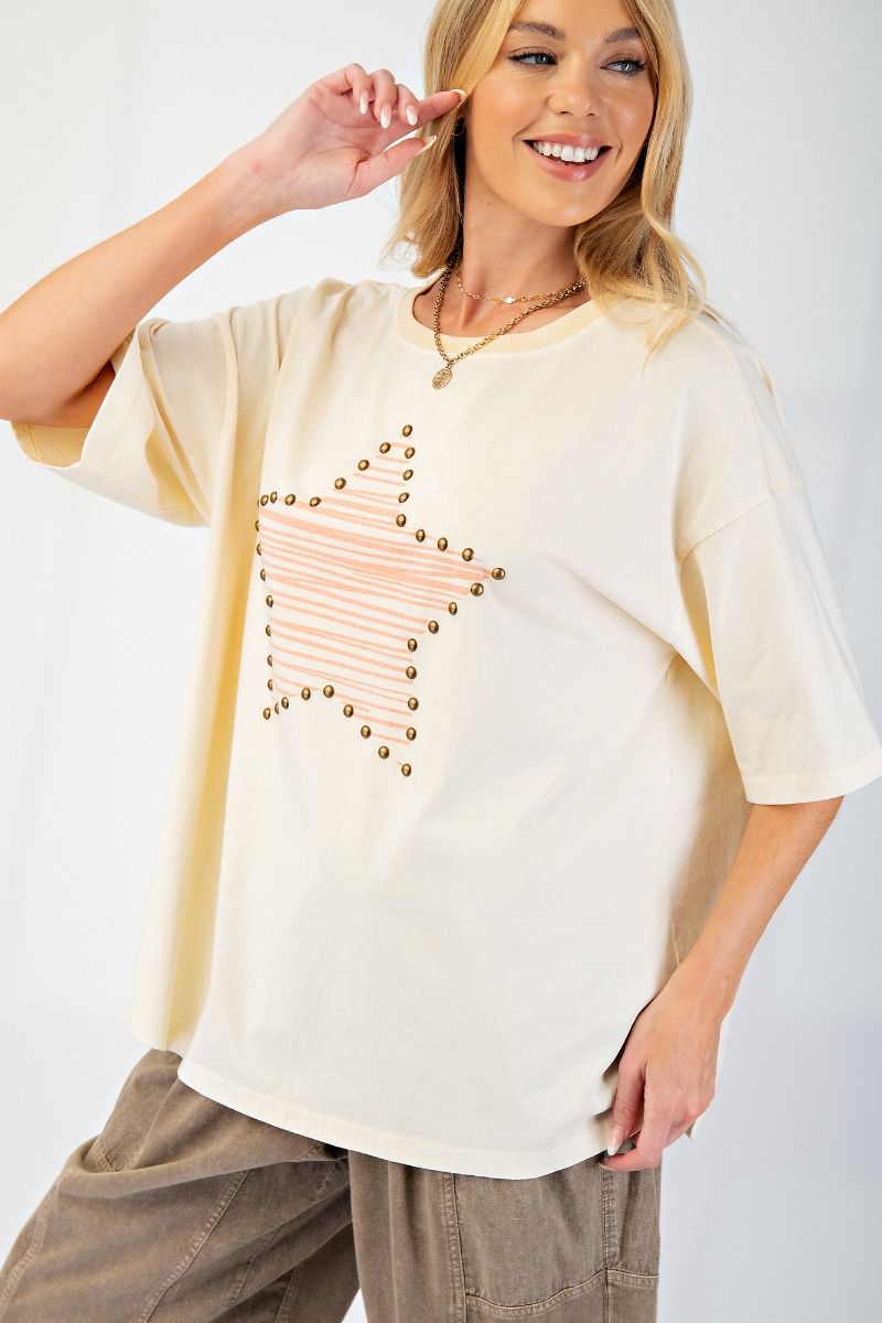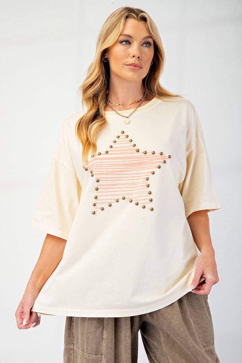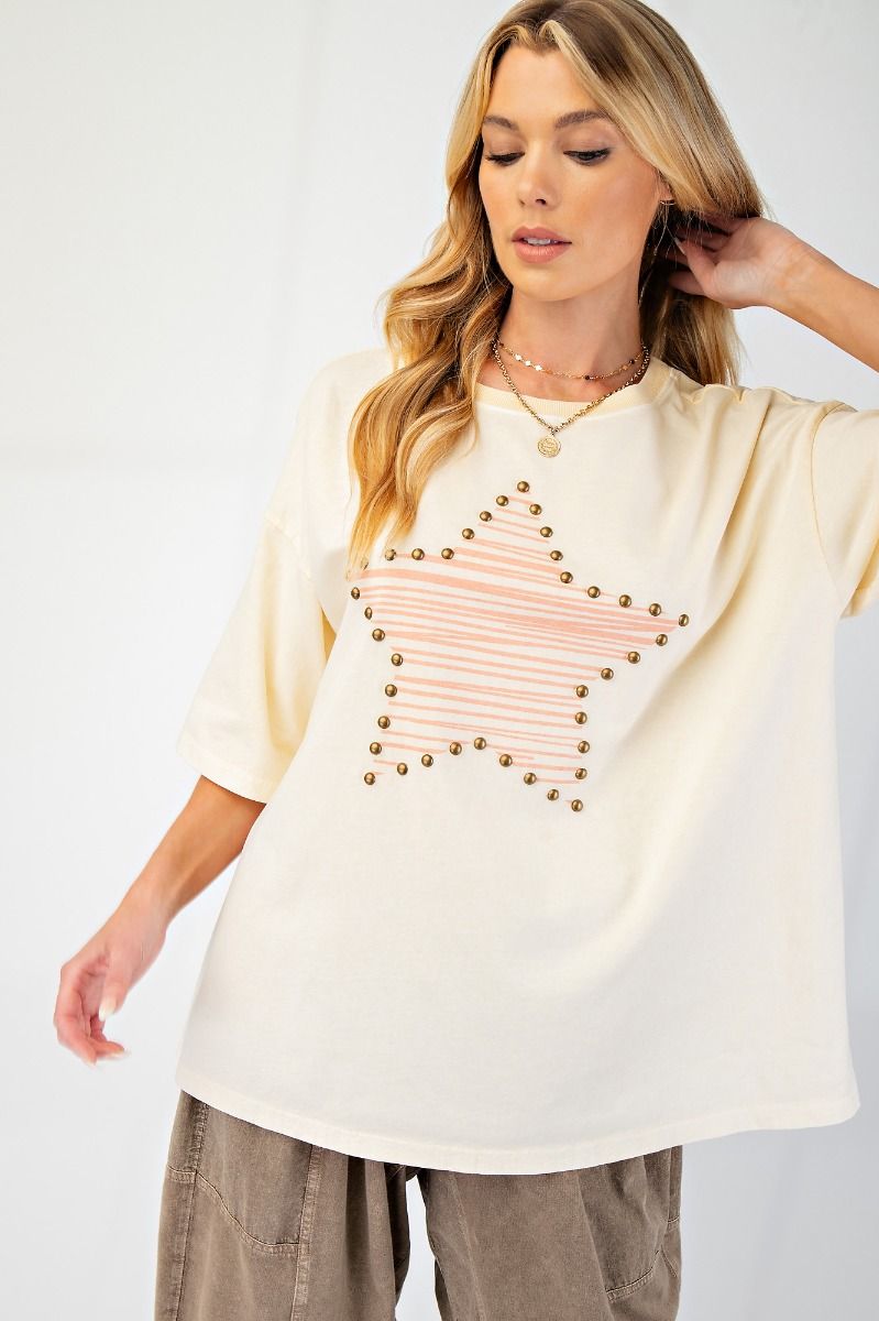 Description: STAR PRINT STUD COTTON JERSEY TOP