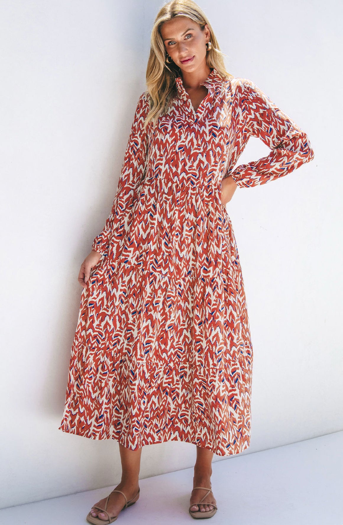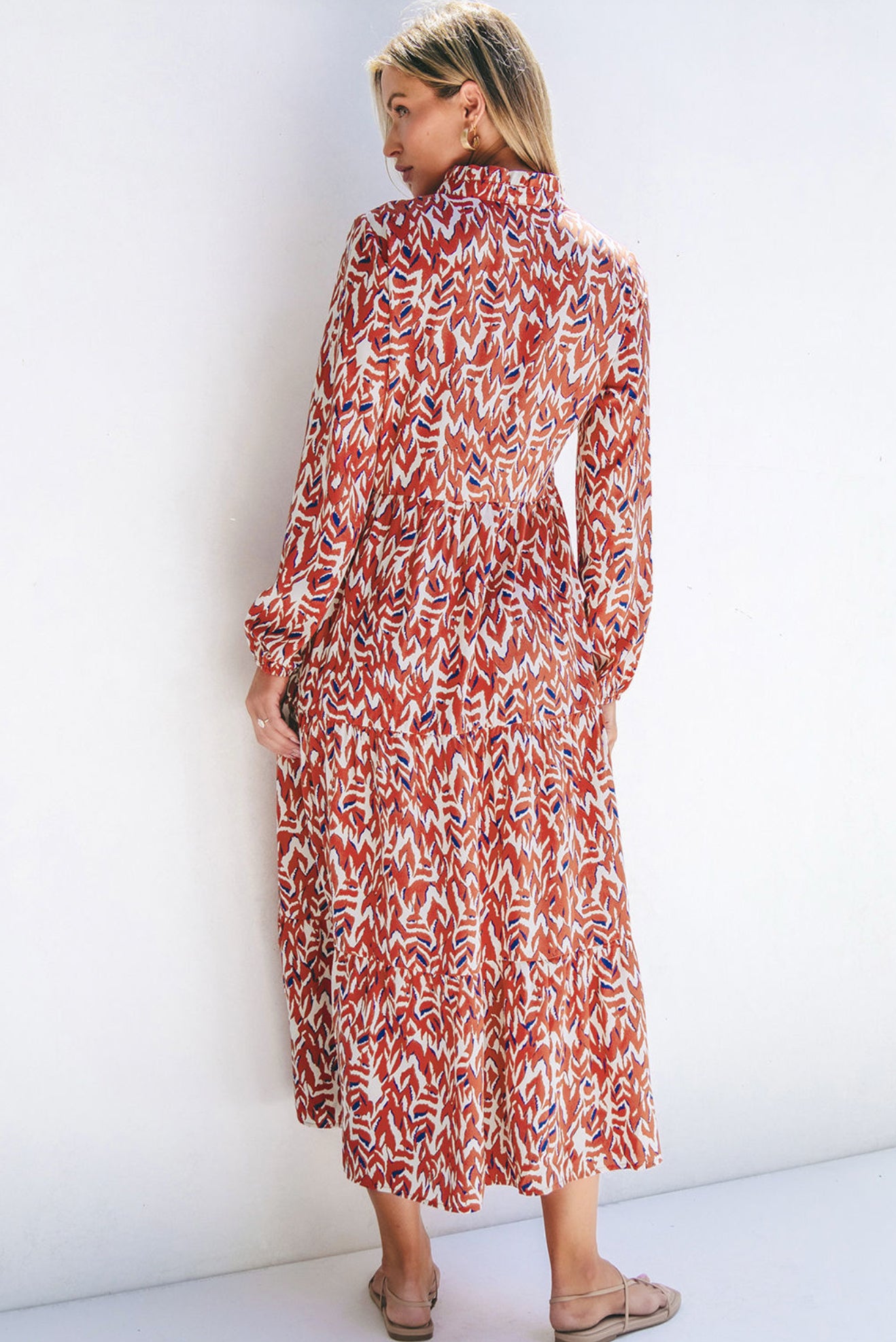 The abstract printed dress offers a sophisticated canvas of artistic patterns.