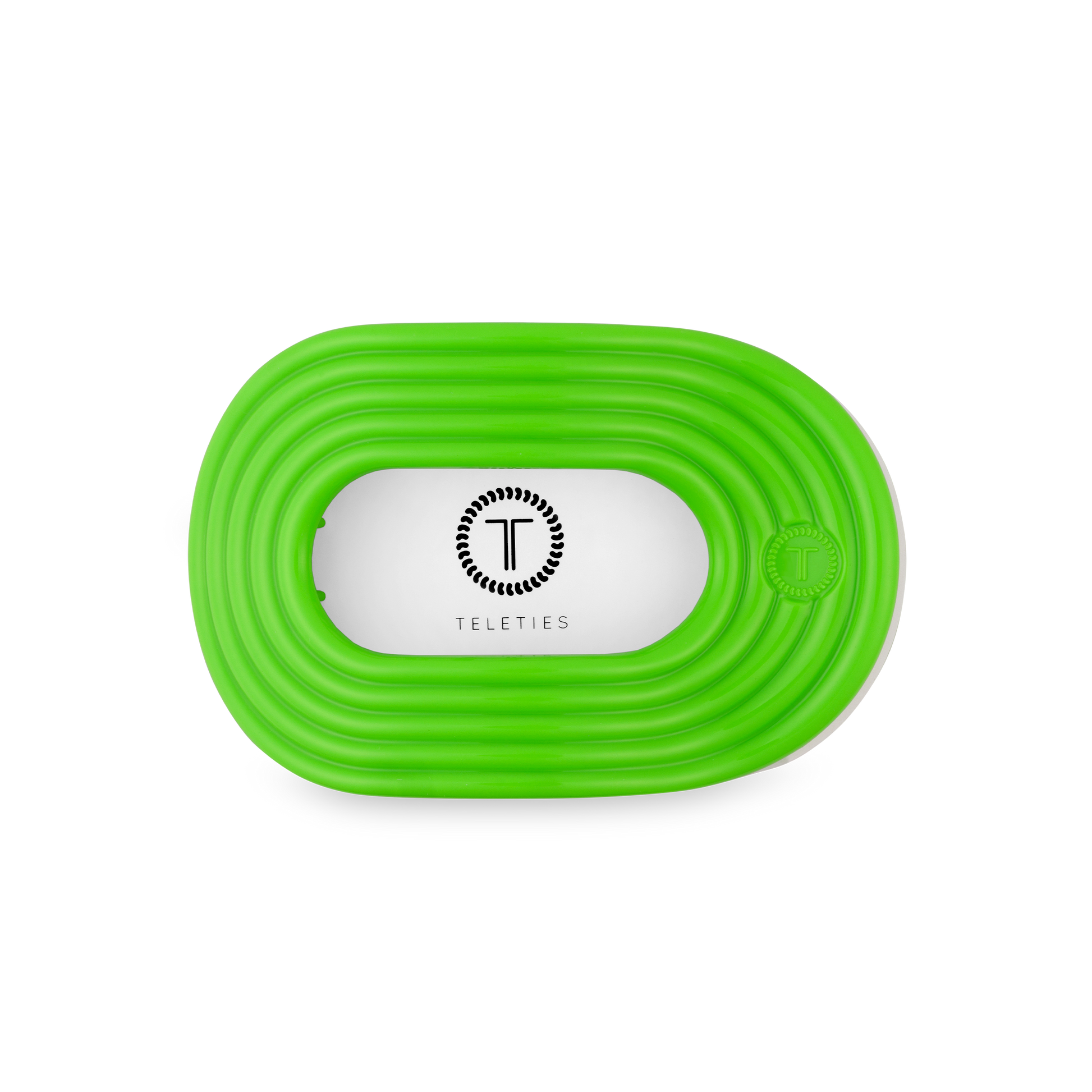 Lay flat and relax with the new TELETIES Glow For It Medium Flat Round Hair Clip in Neon Green. This hair clip is designed to allow you to lay back flat, do yoga, or sit comfortably in a seat with a headrest, and it is made with the same material that is nearly unbreakable. Featuring a grooved texture for a dimensional finish.