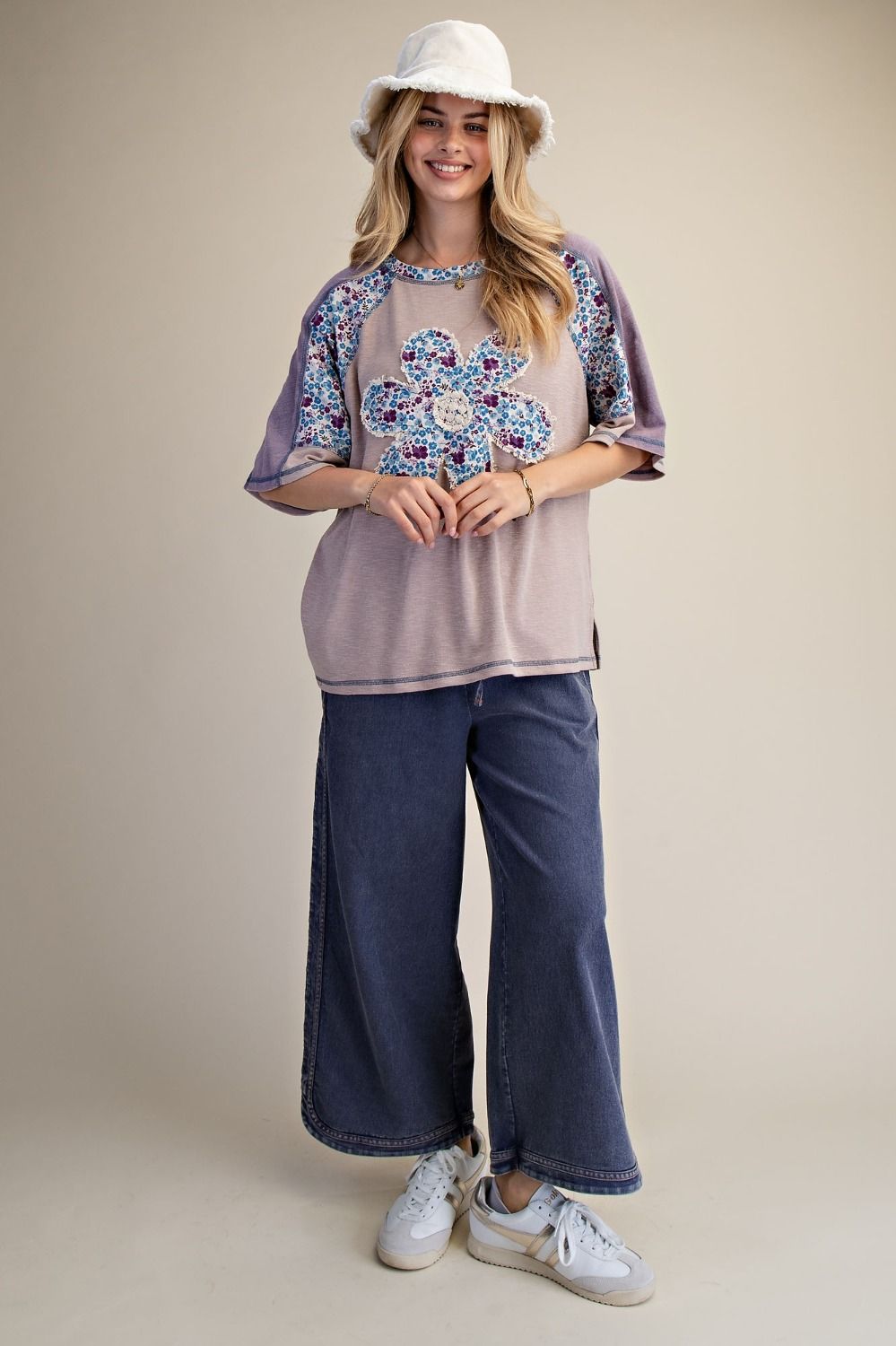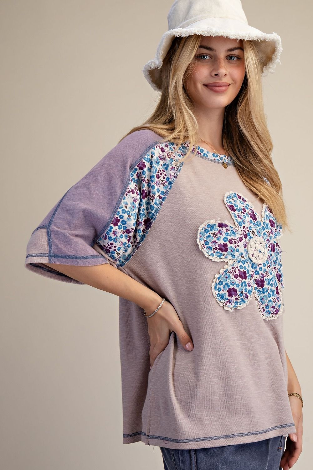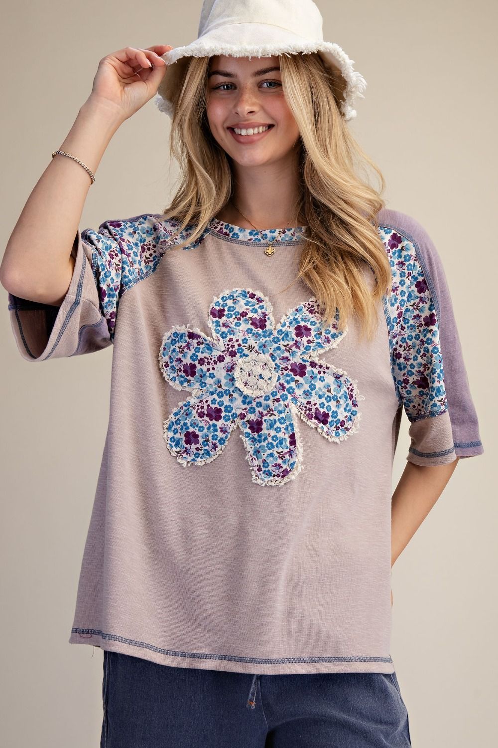 Description: DAISY PATCH FRONT WASHED COTTON TOP
