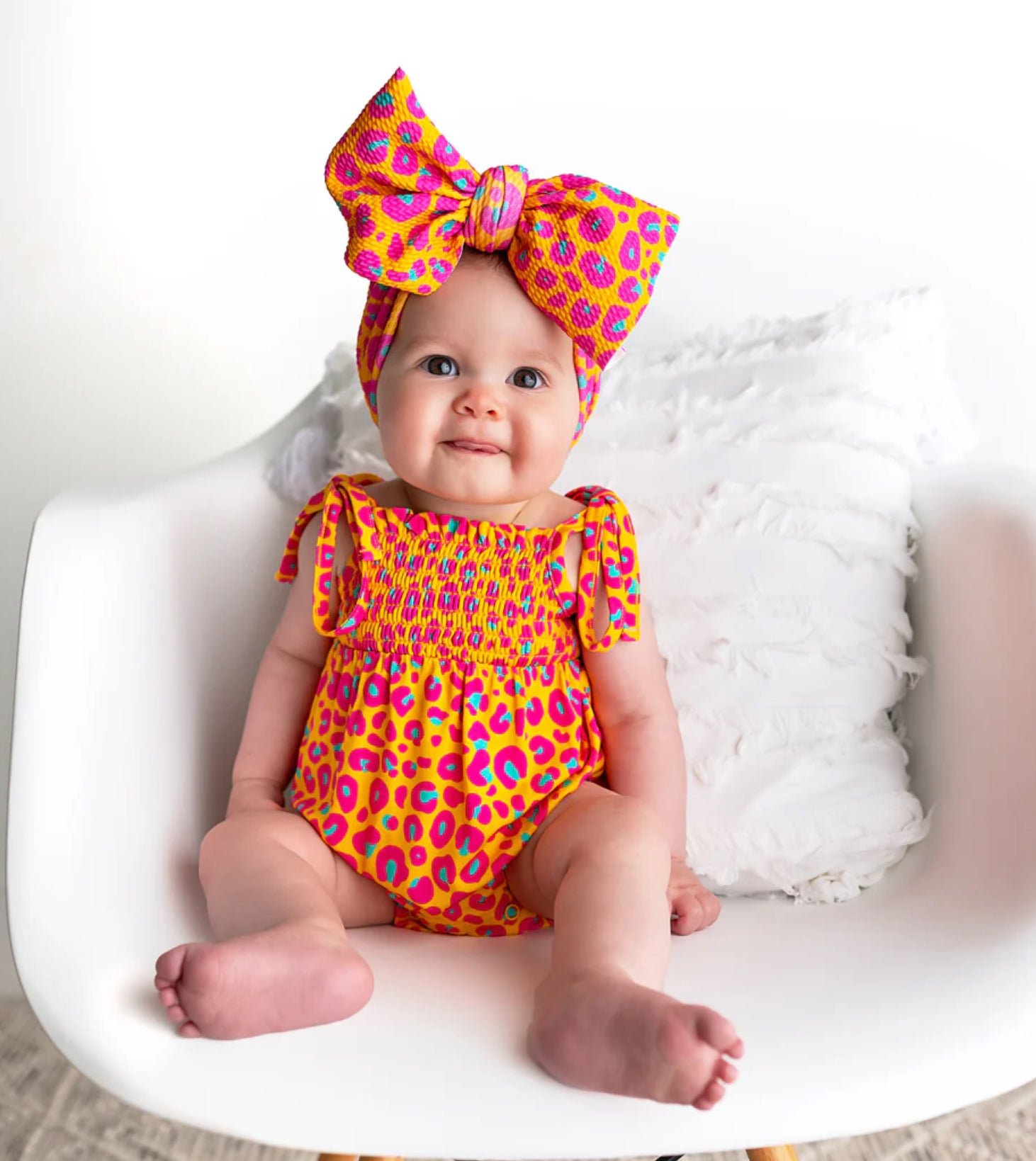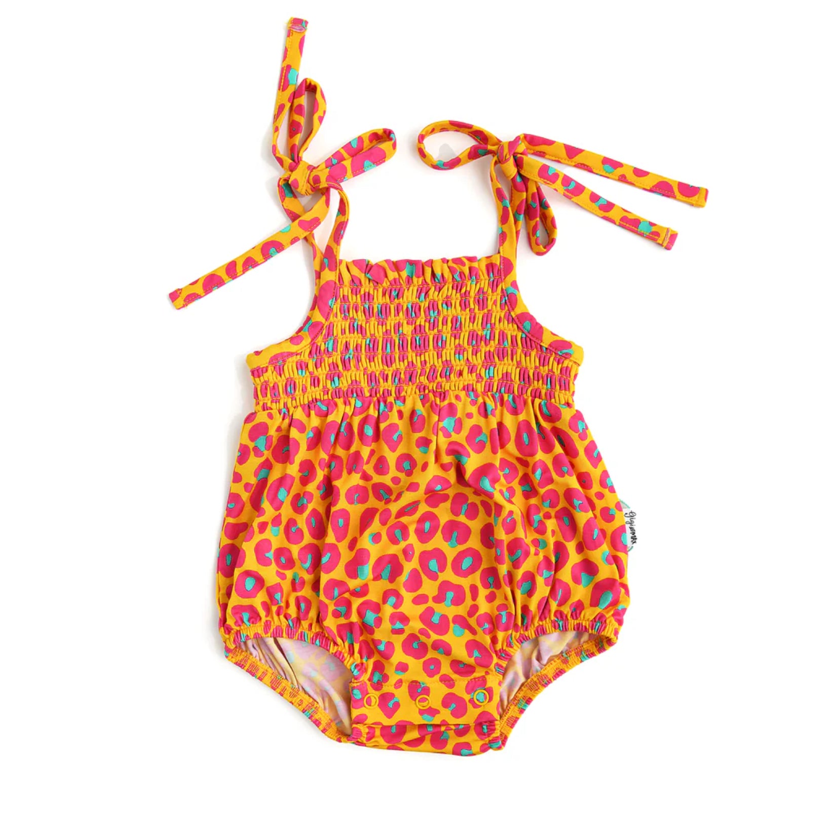 Kelly Leopard Smocked Bubble Romper by Gigi & Max