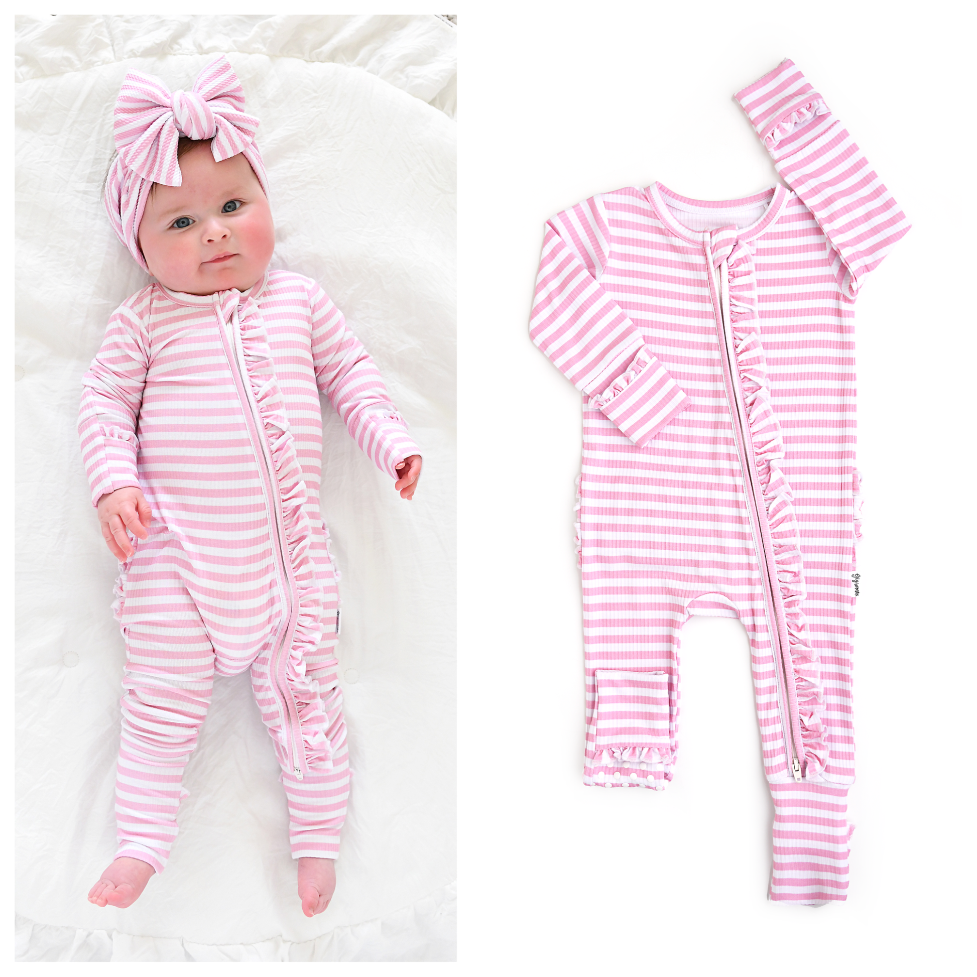 This zip one piece is super soft and comfortable. Featuring a zipper that runs from the top of the outfit to the ankle. Our favorite part about this outfit is that the zipper is 2 way! Making for super easy diaper changes without having to remove the whole outfit.