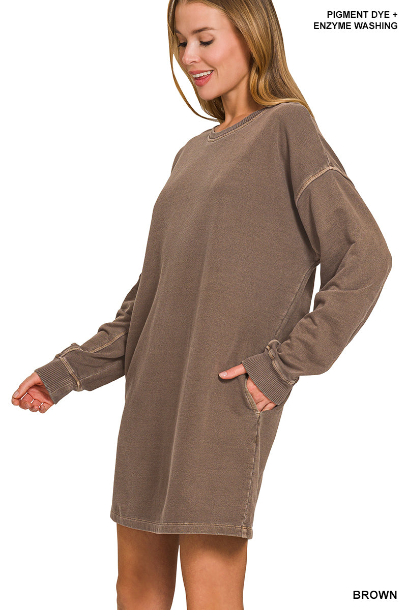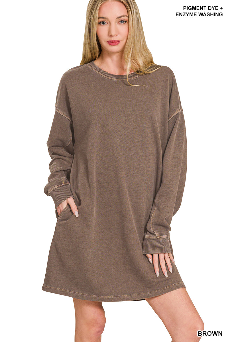 OVERSIZED F/TERRY PIGMENT DYE +ENZYME WASHED TUNIC TOP