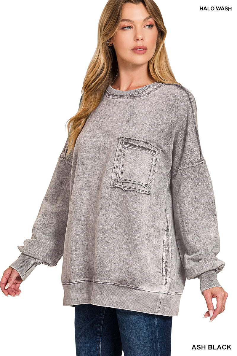 HALO WASHED FRENCH TERRY EXPOSED-SEAM SWEATSHIRT