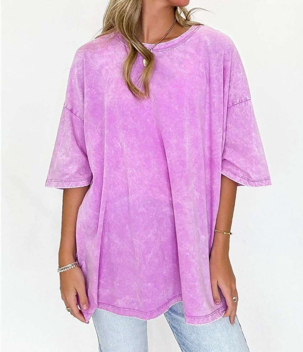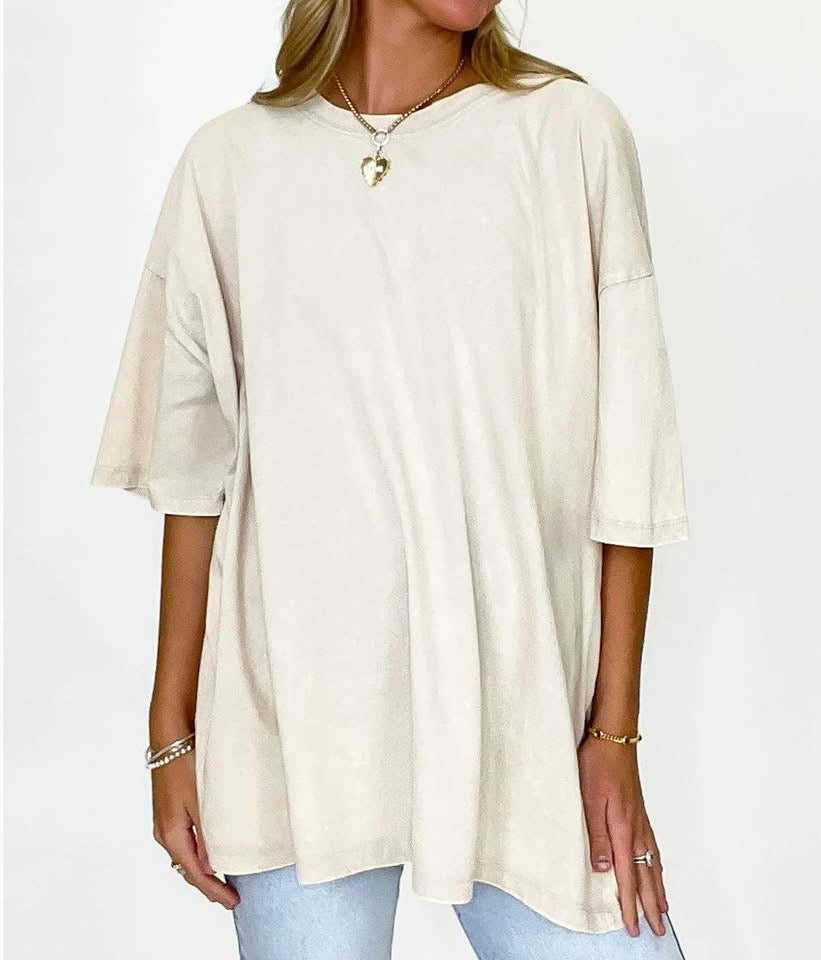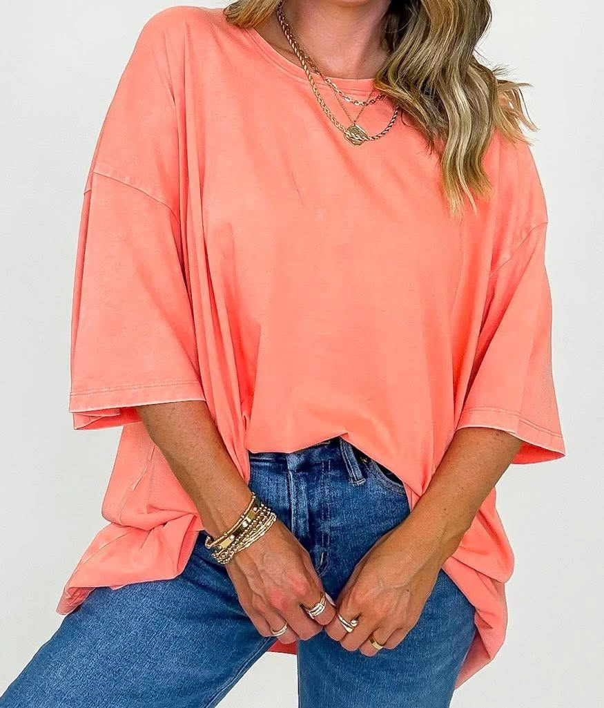 ACID WASH COTTON DROP SHOULDER OVERSIZED LONGLINE BOYFRIEND BOX TEE