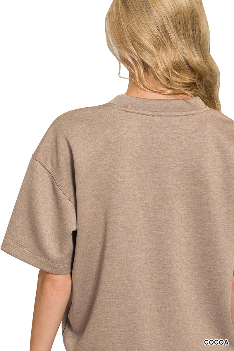 Get ready for summer in style with this scuba short sleeve top and shorts set. The scuba fabric is perfect for a comfortable and form-fitting look. The matching set is effortlessly chic and makes outfit planning a breeze. Ideal for a casual day out or lounging at home with a touch of fashion-forward flair.