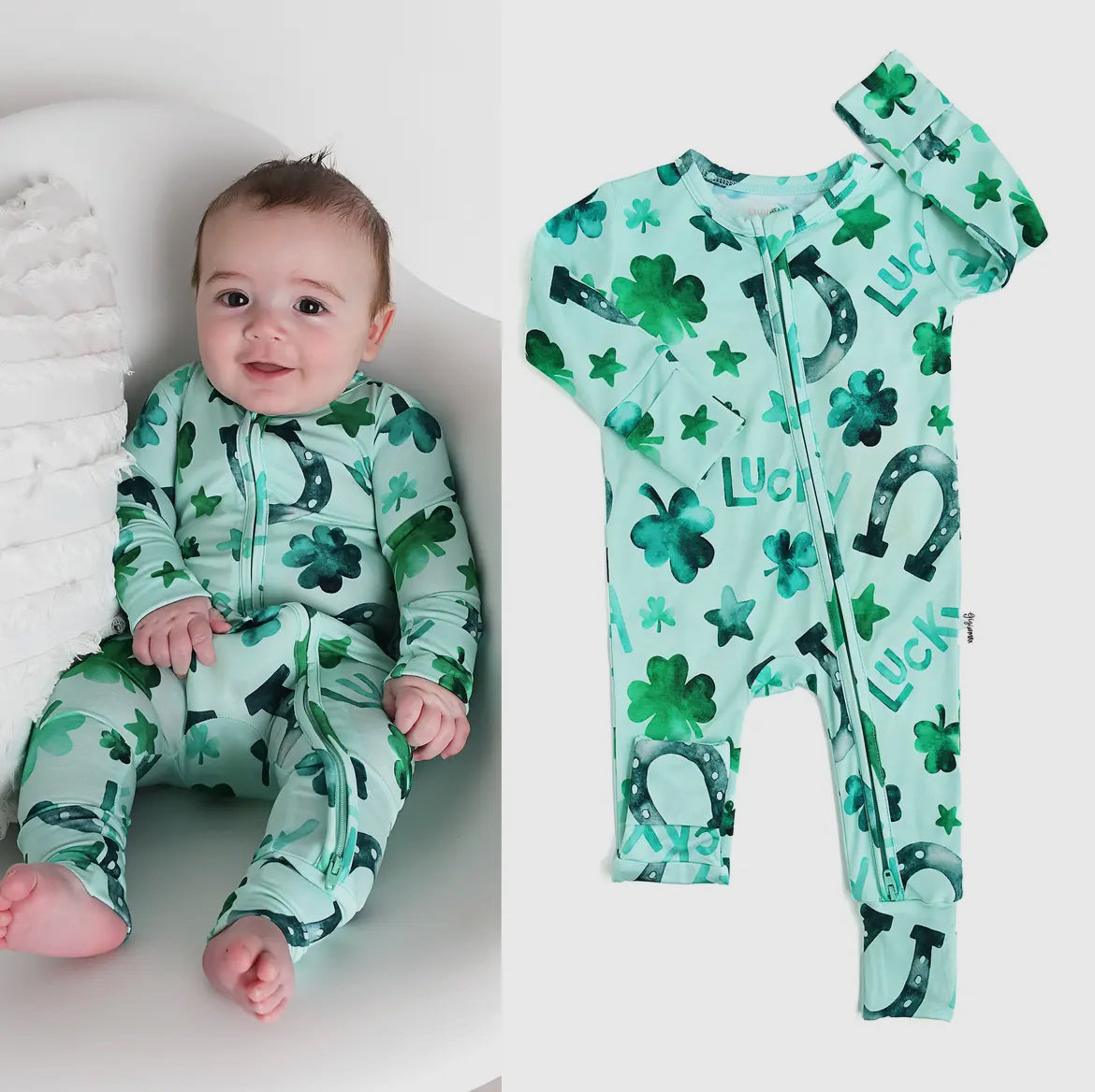 This zip one piece is super soft and comfortable. Featuring a zipper that runs from the top of the outfit to the ankle. Our favorite part about this outfit is that the zipper is 2 way! Making for super easy diaper changes without having to remove the whole outfit.
