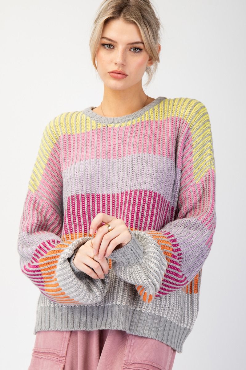 COLOR BLOCK KNIT SWEATER PULLOVER
