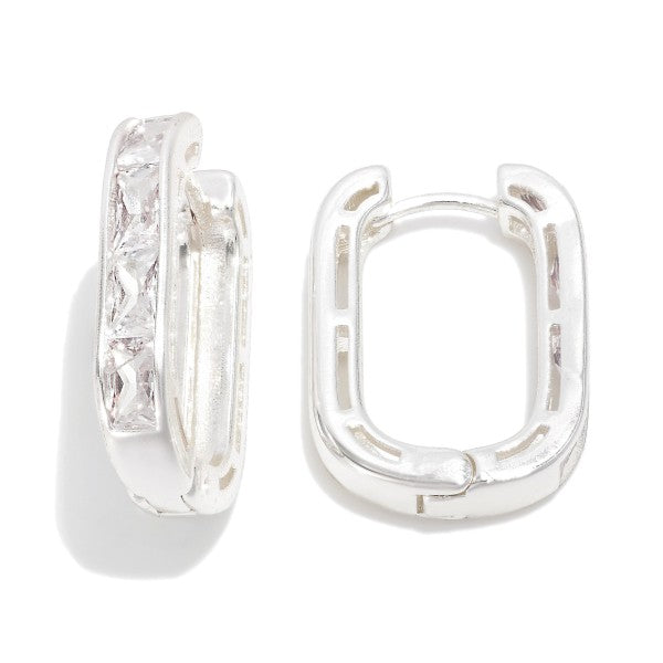 Metal Tone Rounded Rectangle Hoop Earrings Featuring Glass Crystal Details