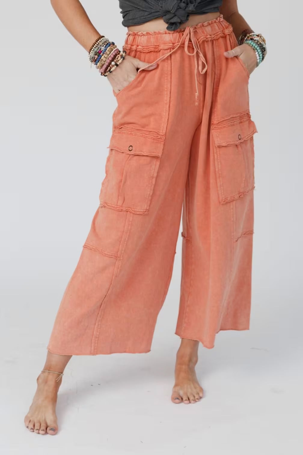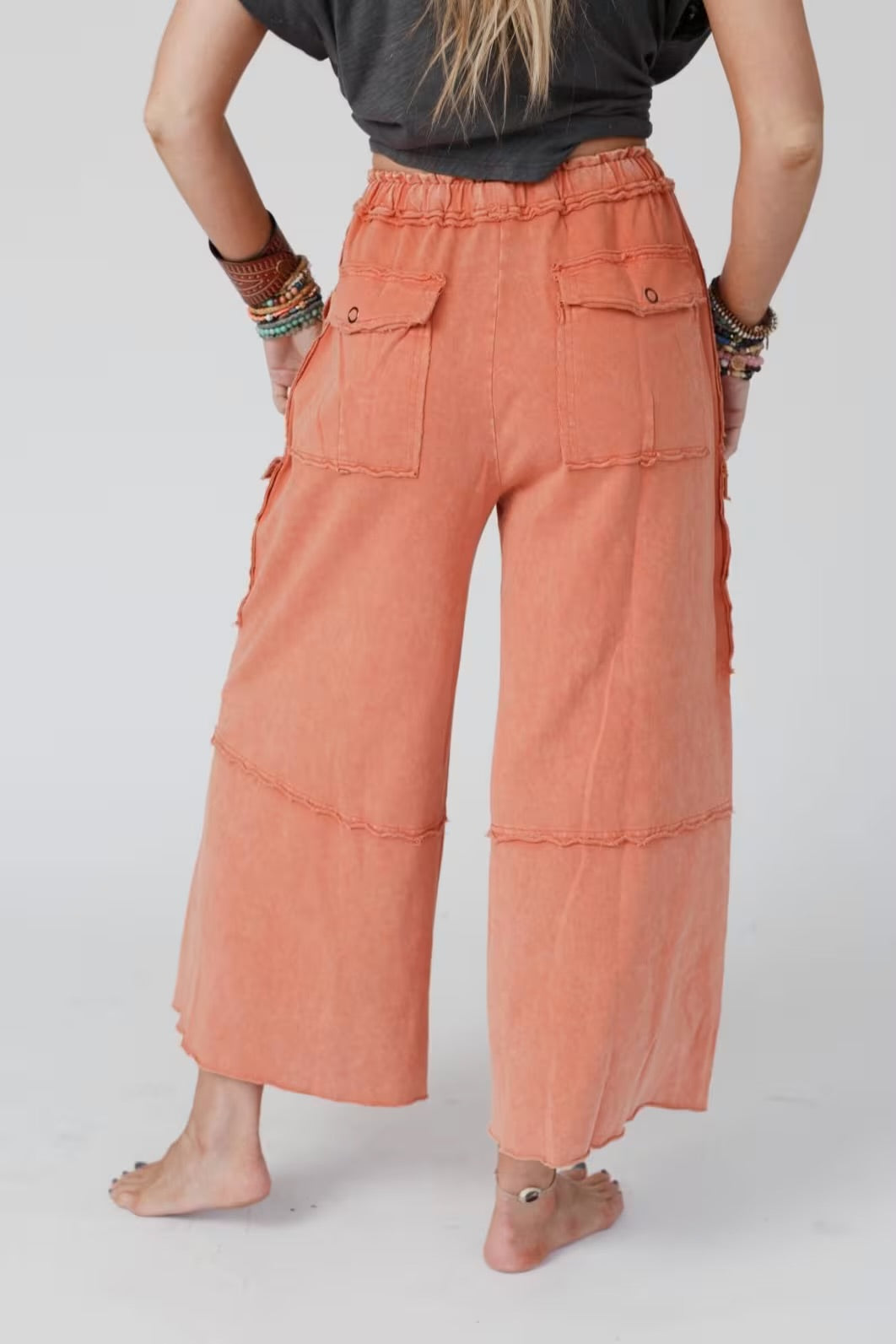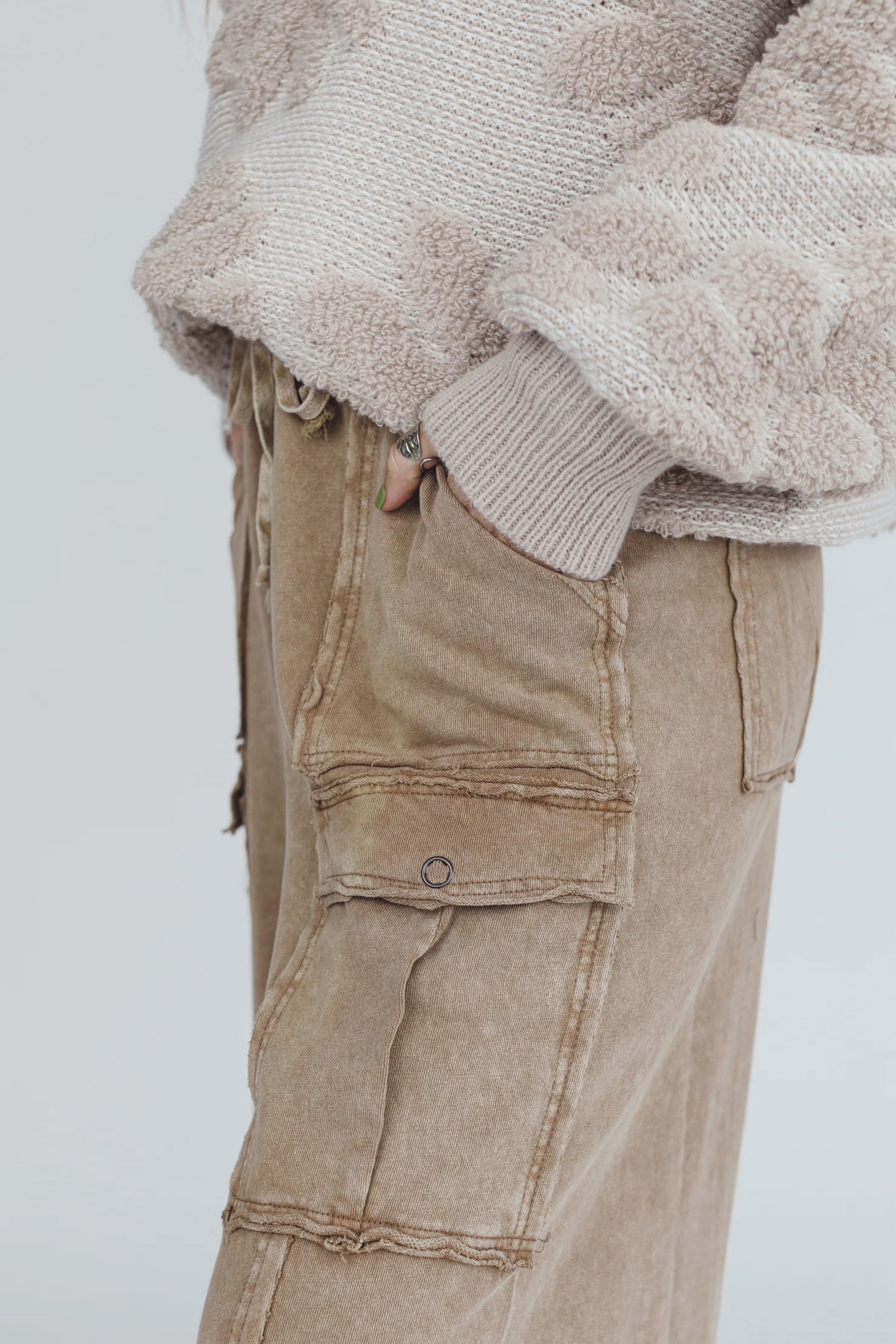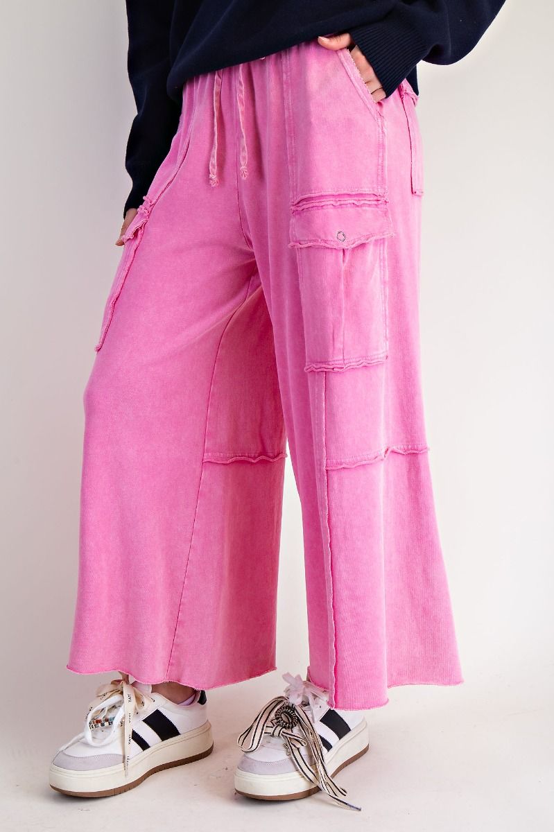 FEELING GOOD UTILITY MINERAL WASHED WIDE LEGS TERRY KNIT CARGO PANTS