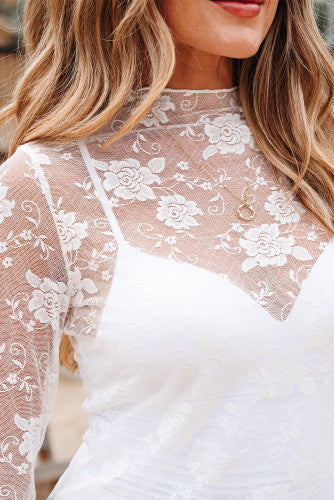This mesh top is sexy alluring with a sheer floral lace vision.