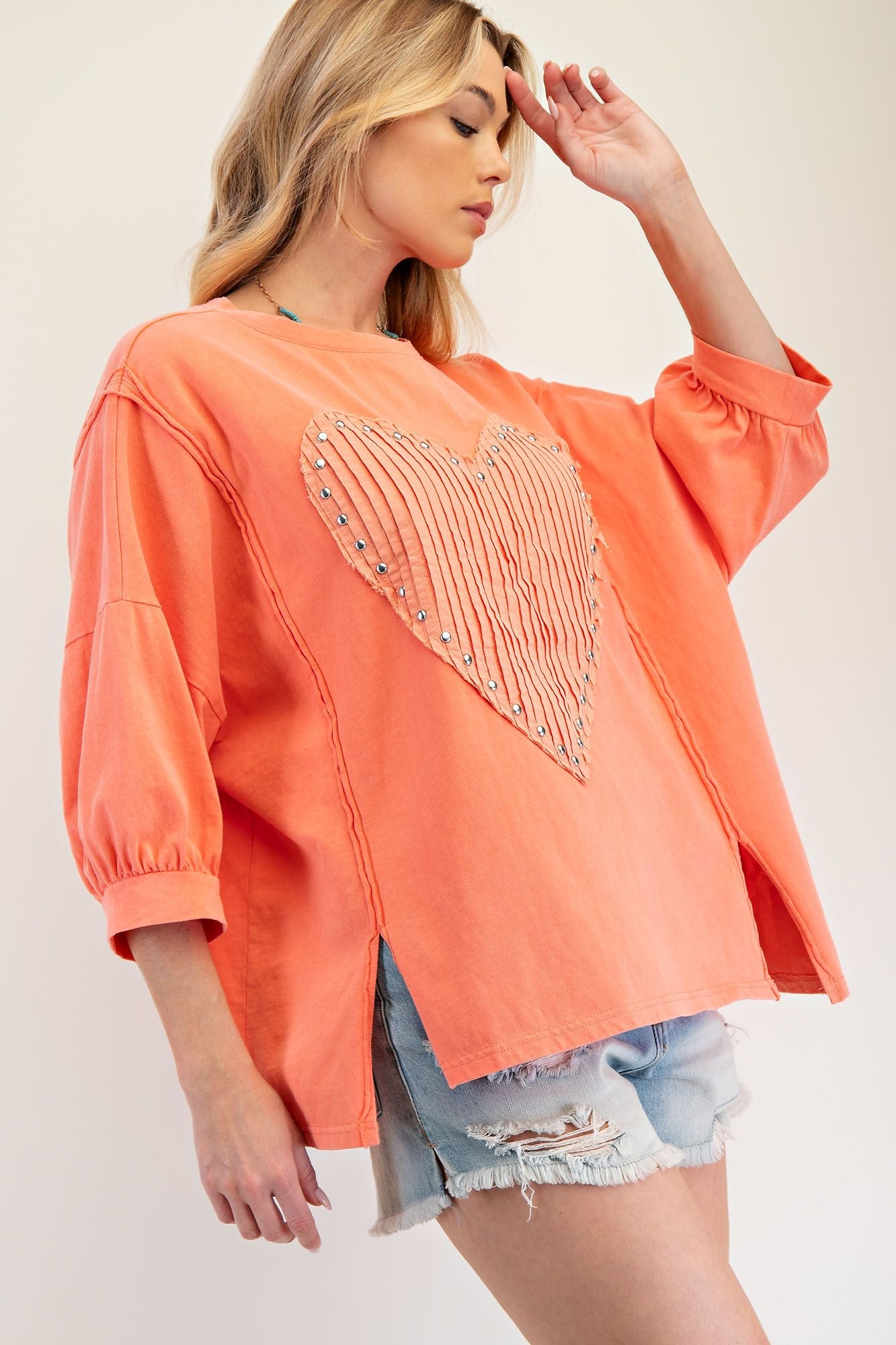 STUD HEART PATCH MINERAL WASHED KNIT TOP