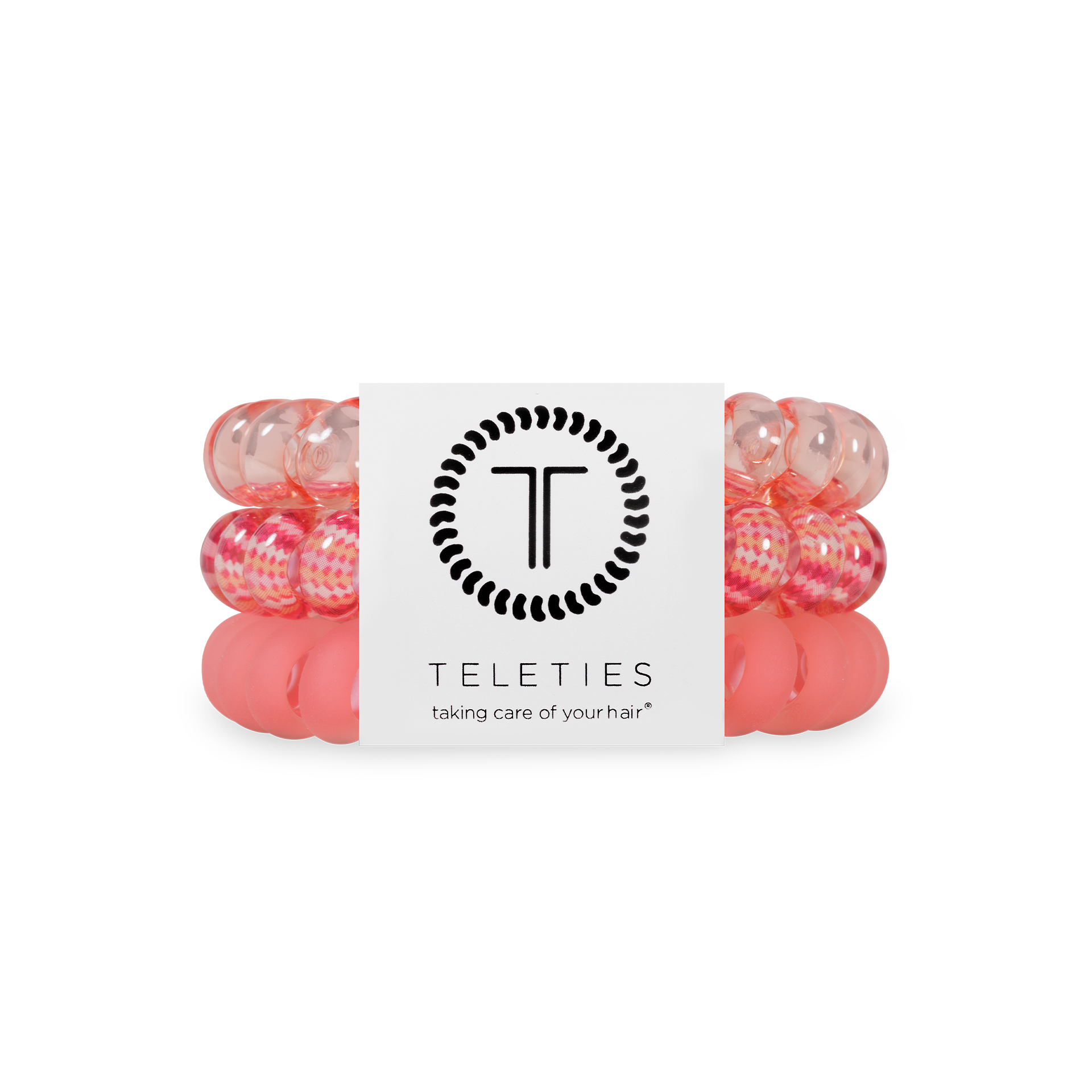 Dreamsicle Large Hair Ties in Orange and Pink offer a strong grip without damage, doubling as a chic wrist accessory when not in use. Your new favorite hair essentials all year round.