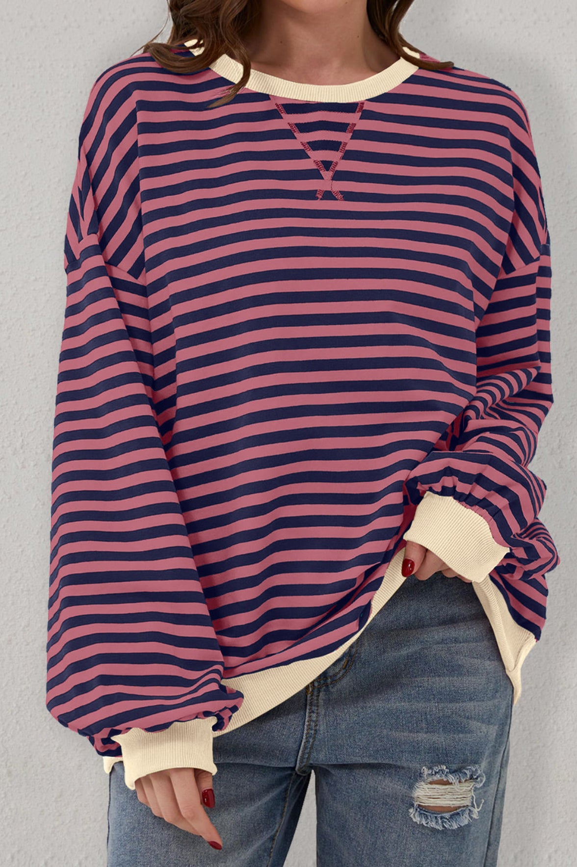 - This womens sweatshirt is a classic piece with timeless striped pattern
