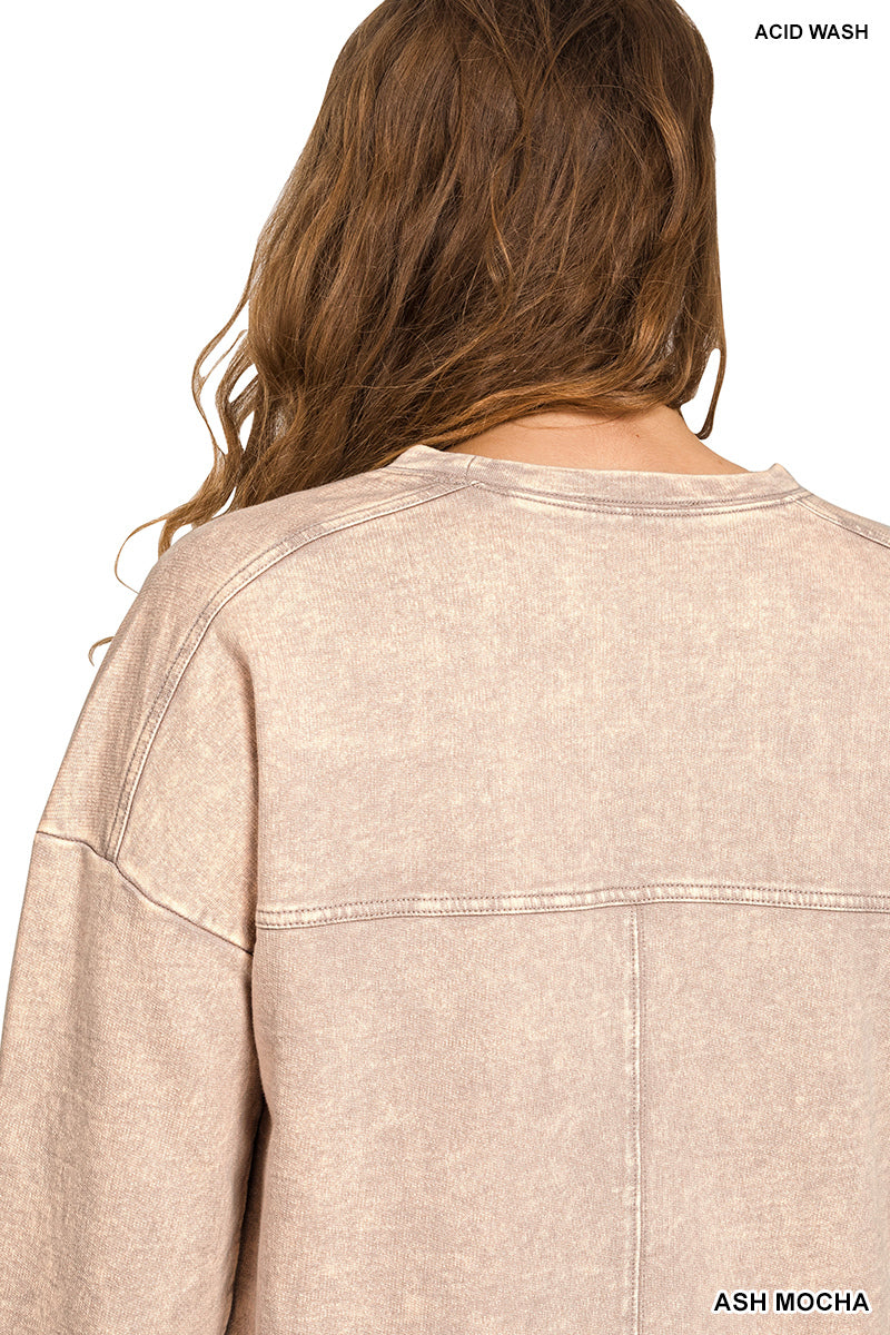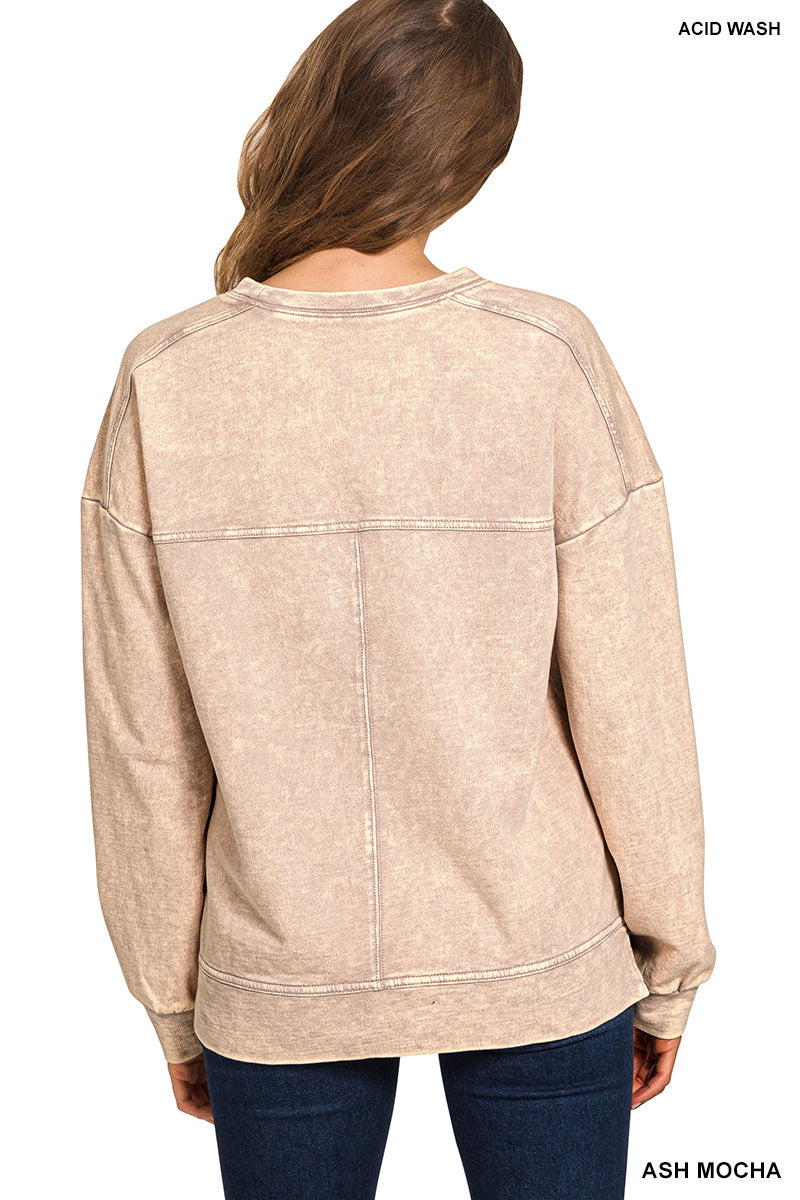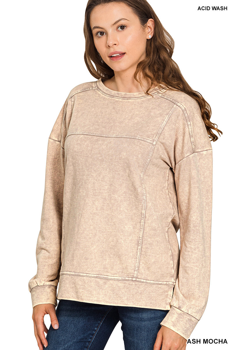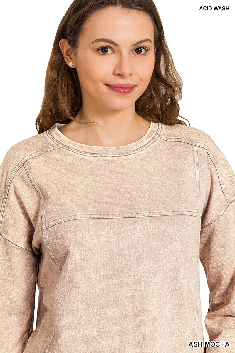 ACID WASH F/TERRY EXPOSED-SEAM PULLOVER
